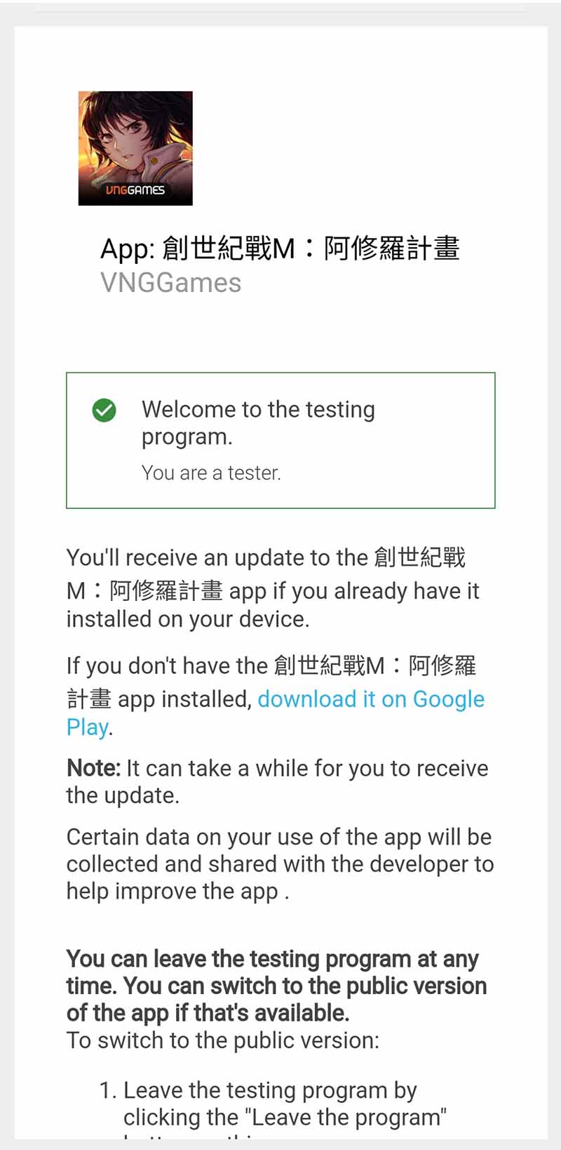 例1 : 創世封測期間使用Google A帳號進行遊戲,上線後可獲得使用Google A帳號即可領取獎勵。