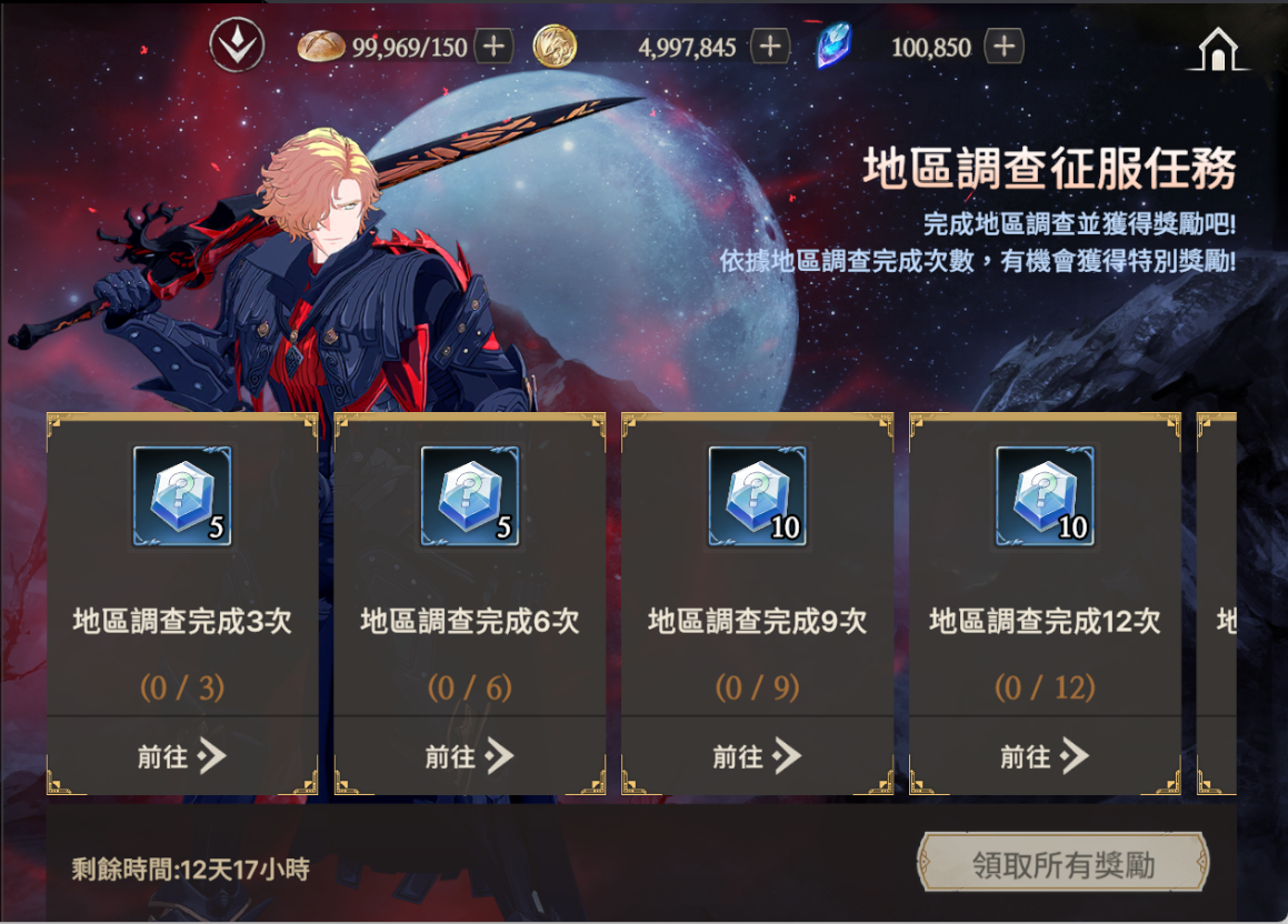 活動說明:活動期間內,完成地區調查至一定次數後,即可獲得角色記憶碎片。