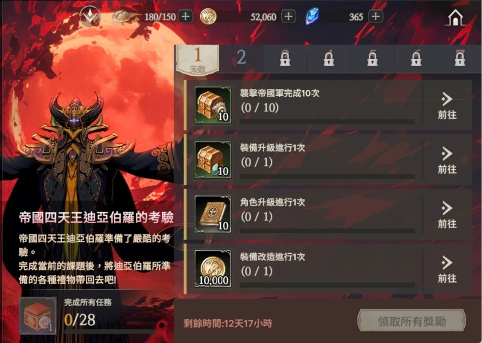 活動說明:活動期間內,完成任務可以獲得獎勵,全數完成後可額外獲得獎勵。