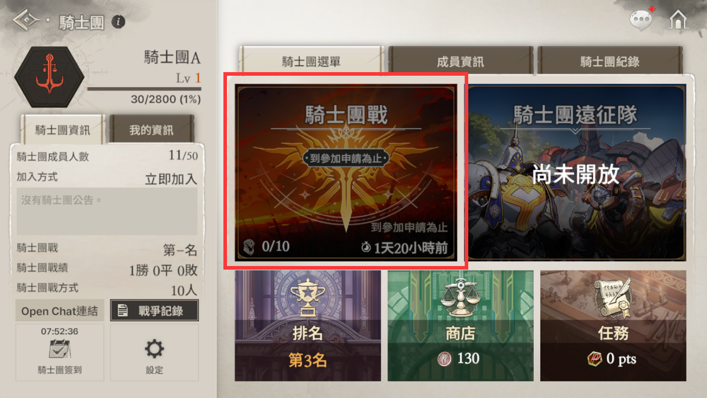 為了讓各位守護者有更充裕的時間準備騎士團戰的成員,因此會進行2次的預熱賽季讓各騎士團長們可以自由調整與招募團員們,請把握前兩次的時間哦!
