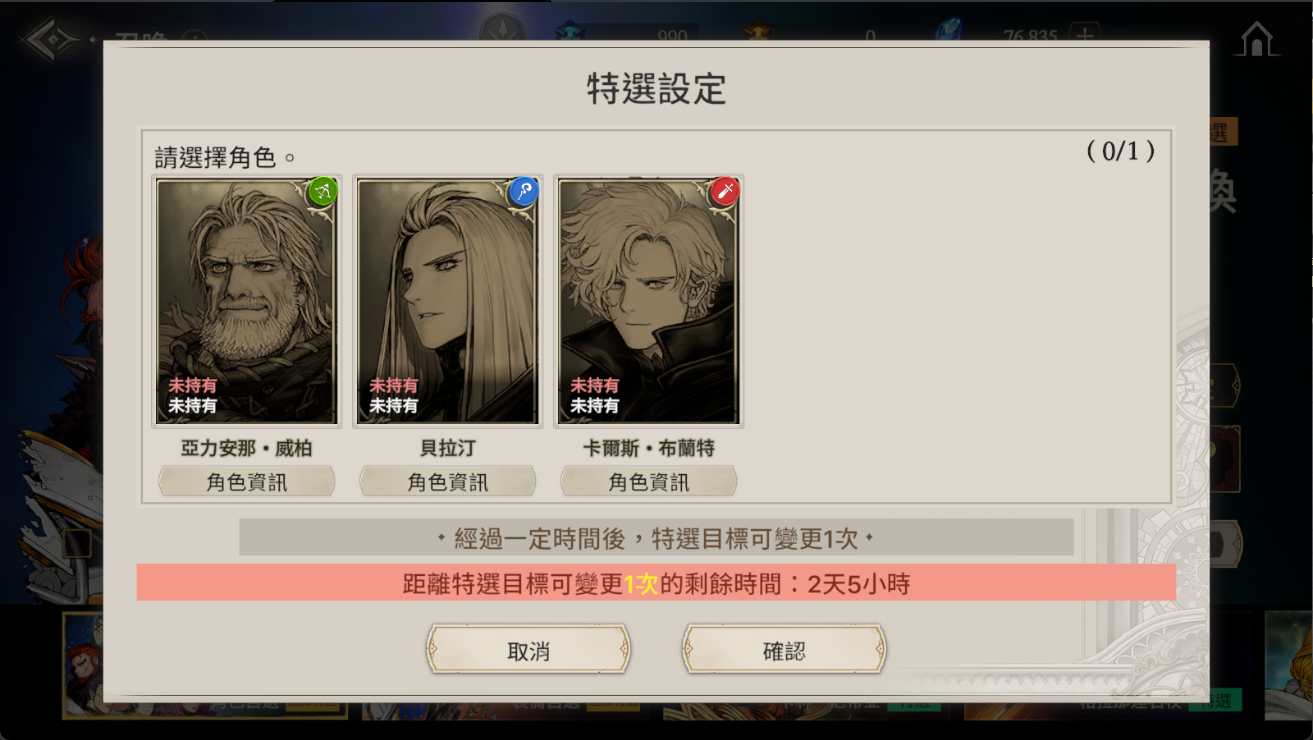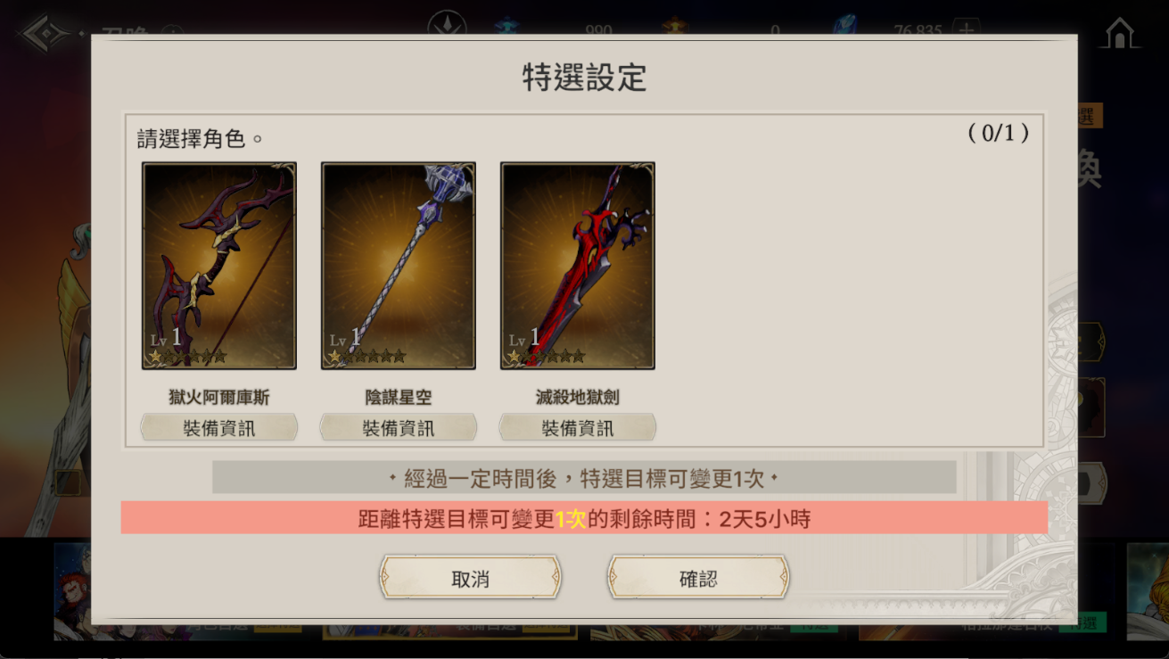 ※ 自選特選更新時間請依遊戲內設定為主,截圖畫面為測試中畫面。
