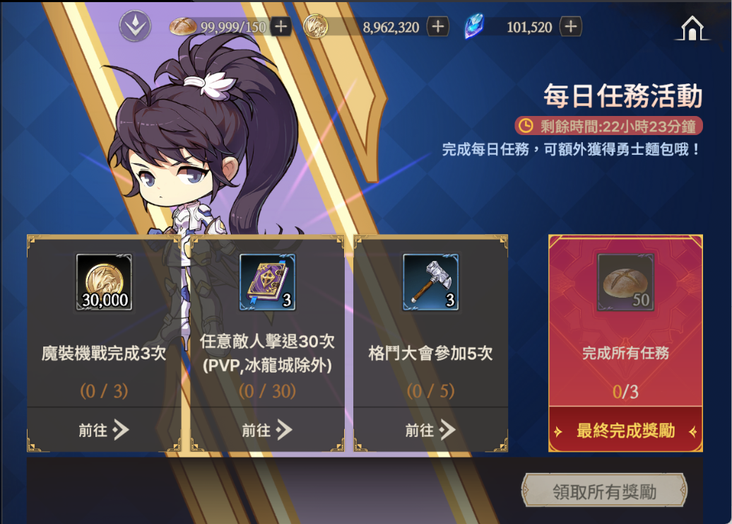 活動說明:每日完成任務可領取獎勵,全部完成後可以再額外獲得獎勵哦!