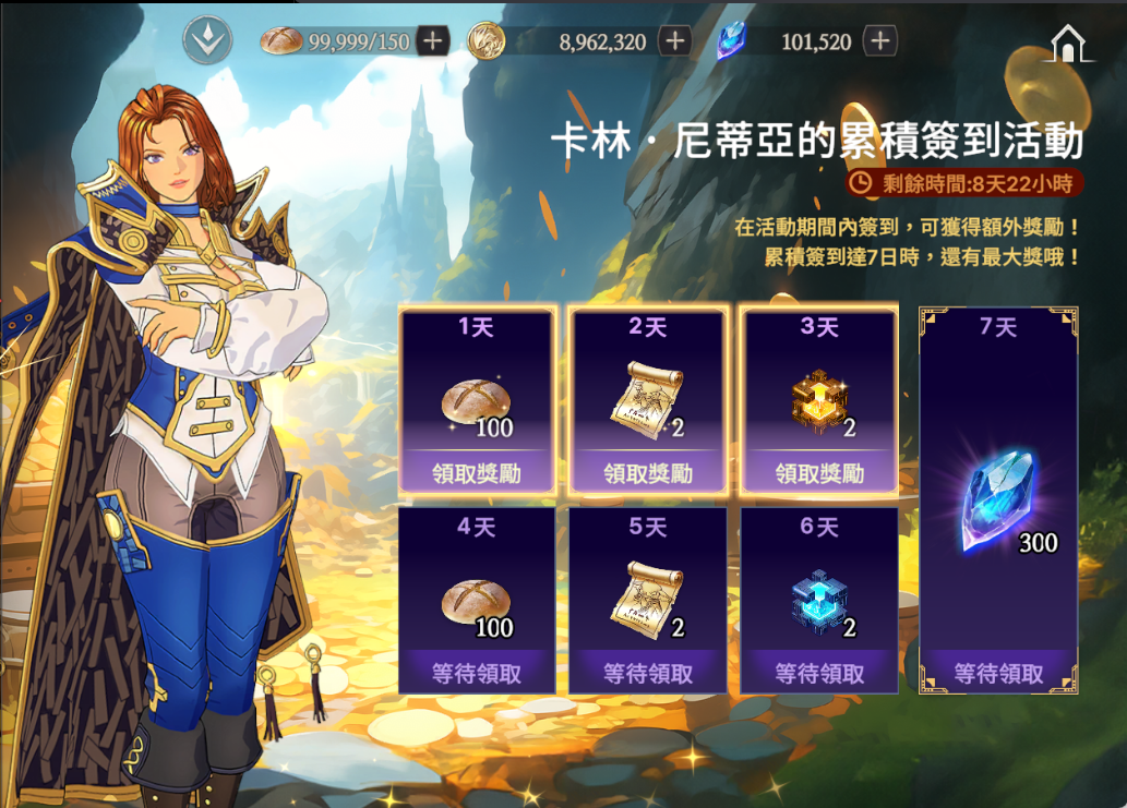 活動說明:每日登入簽到時,可以獲得來自卡林的好禮哦!