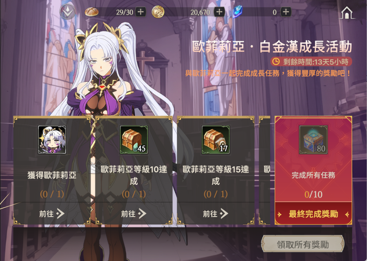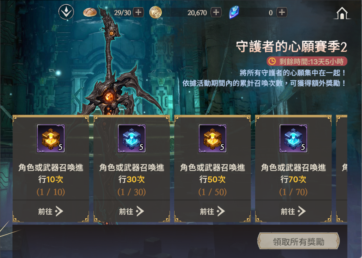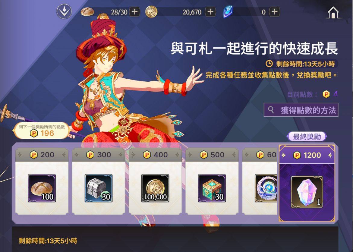 活動說明:完成各種任務並收集點數來獲取獎勵吧,有透明蛋白石等多樣好禮等守護者哦!