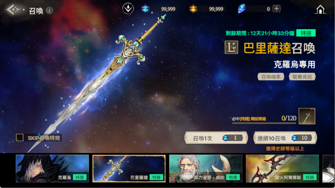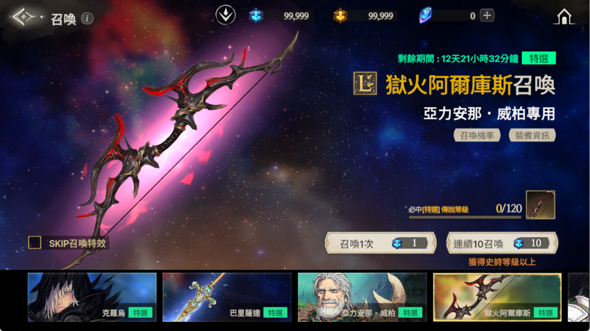 ※ 召喚時,如果獲得傳說等級的武器但並非特選武器時,必中次數不會重置。