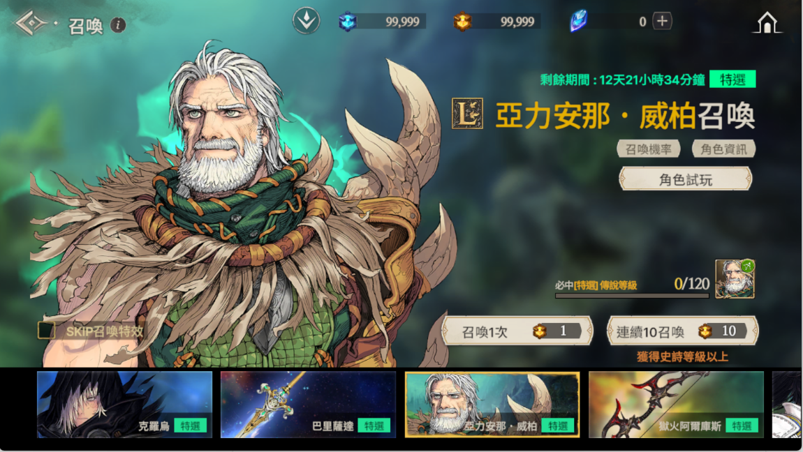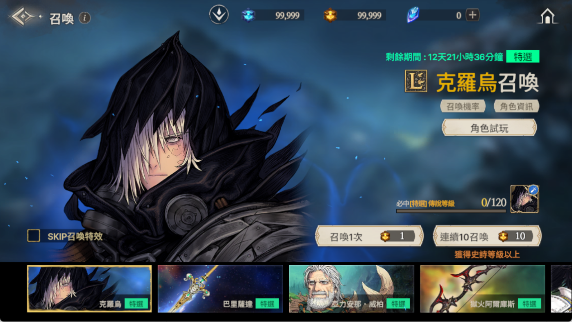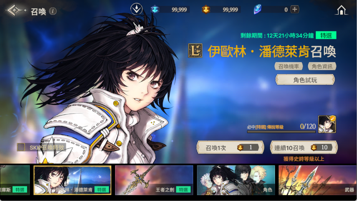 ※ 如果到累計召喚120次為止還沒有獲得特選角色,那麼在第120次時將必中特選角色。