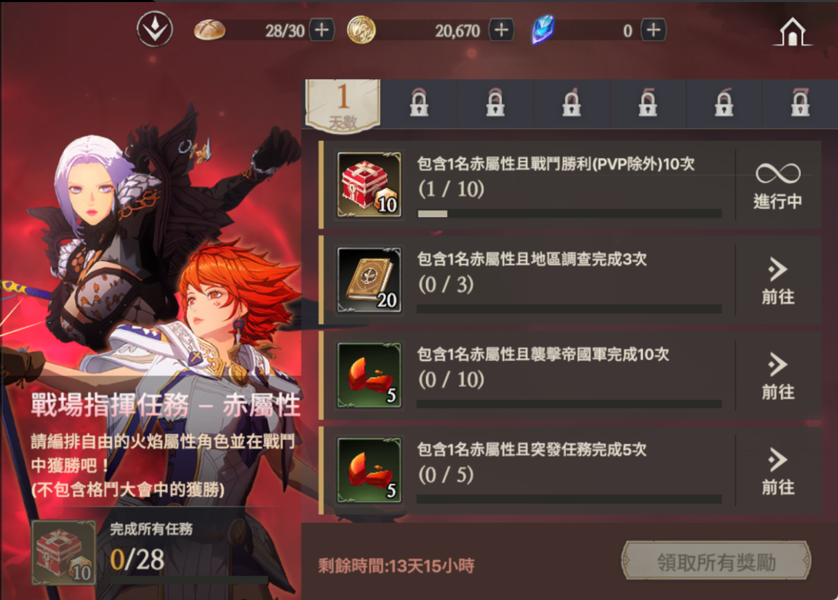 活動說明:活動期間內完成任務可以獲得獎勵,全數完成後可額外獲得獎勵
