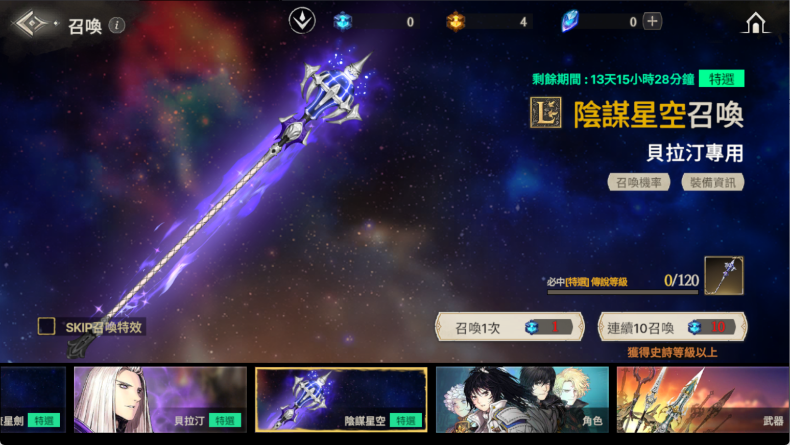※ 如果到累計召喚120次為止還沒有獲得特選角色,那麼在第120次時將必中特選角色。