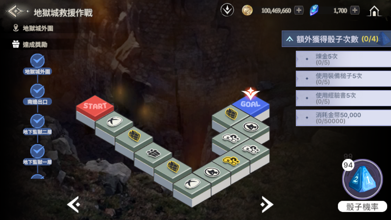 - 地獄城監獄逃出作戰」可透過活動中的【任務】獲得「地獄骰子」來進行。