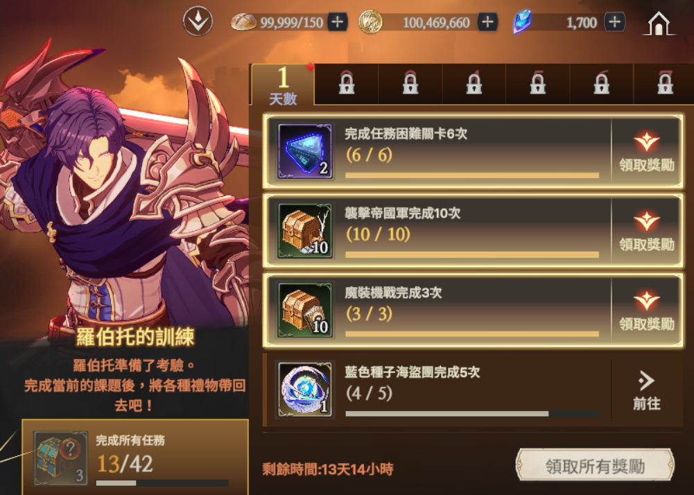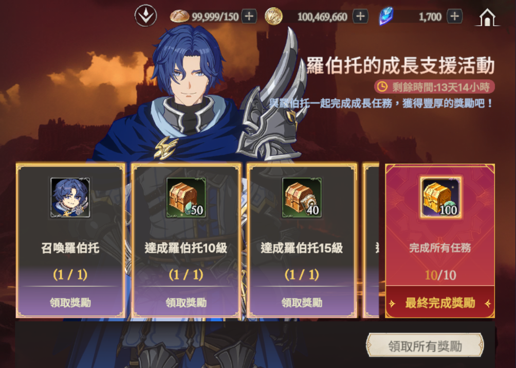活動說明:與羅伯托一起完成成長任務,獲得豐厚的獎勵吧!