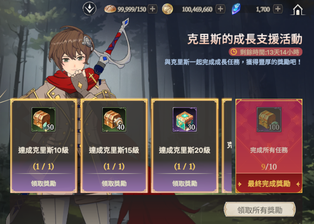 活動說明:與克里斯一起完成成長任務,獲得豐厚的獎勵吧!