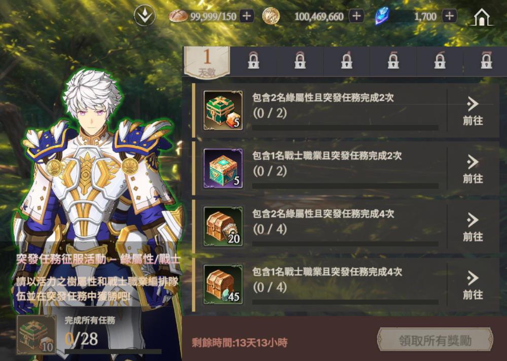 活動說明:請以活力之樹屬性和戰士職業編排隊伍並在突發任務中獲勝吧!