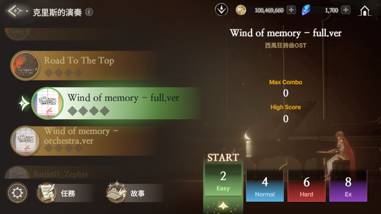 - 包含《西風狂詩曲》OST在內,共有5首樂曲可供自由選擇,並可選擇4種難度進行遊玩。