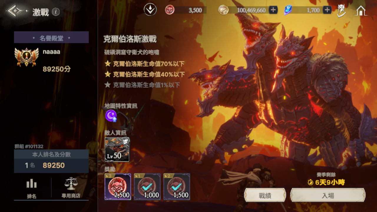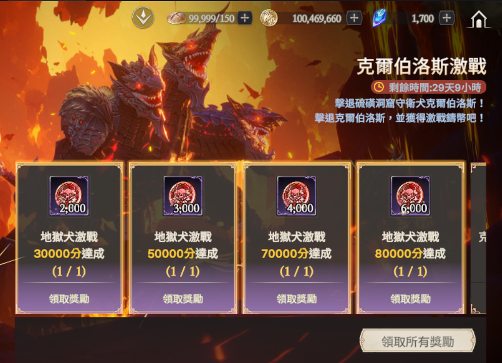 - 克爾伯洛斯副本與勝利、敗北等無關,只要我軍全滅或是回合消耗完畢即副本結束,並且根據傷害量進行分數計算。