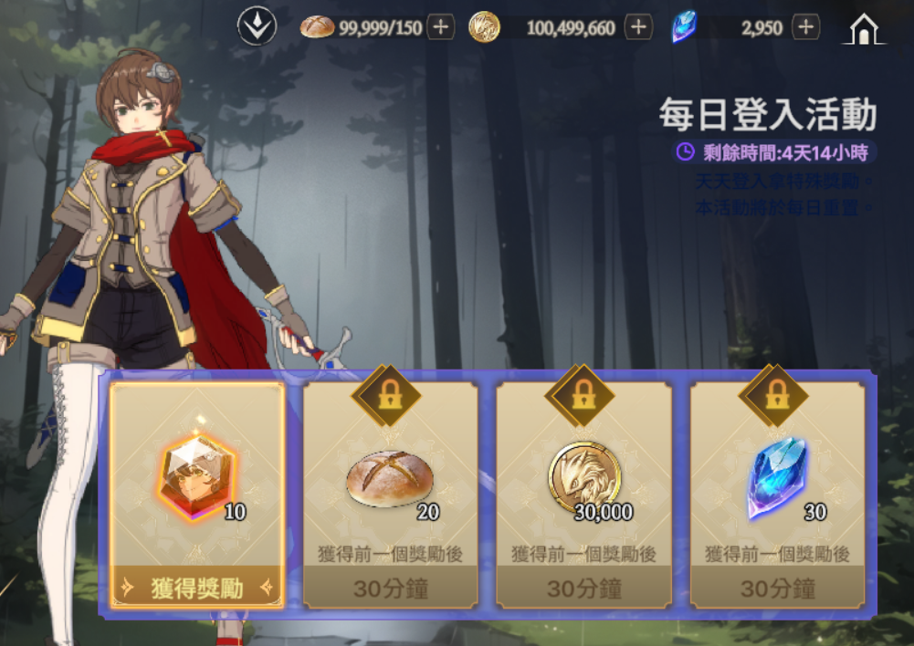 活動說明:天天登入拿特殊獎勵。本活動將於每日重置。