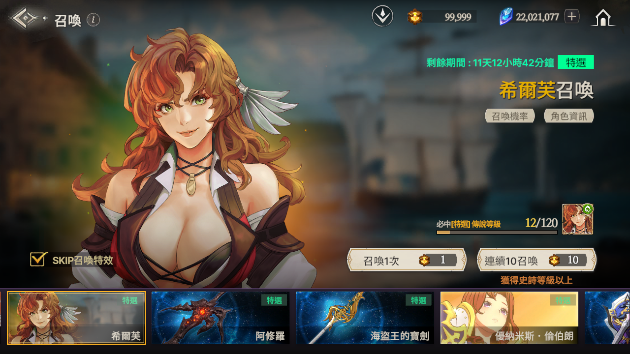 ※ 召喚時,如果獲得傳說等級的角色但並非特選角色時,必中次數不會重置。