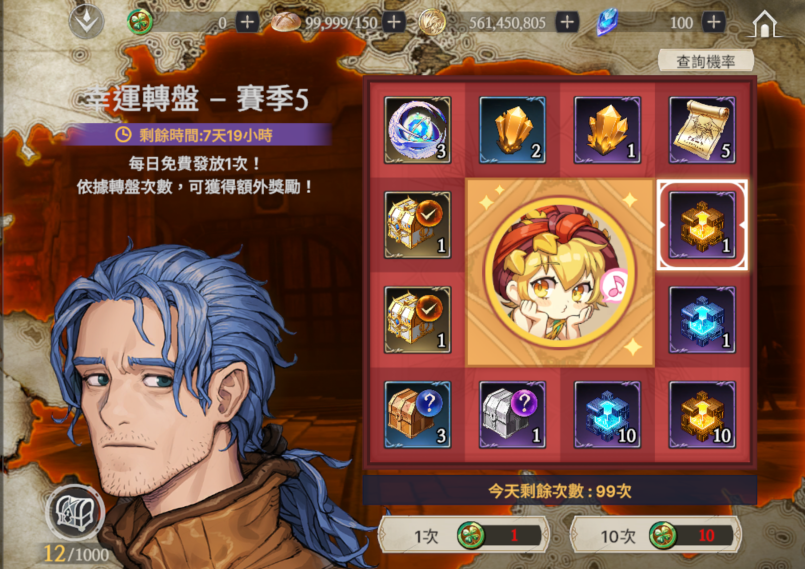 ※ 每日有一次免費的轉盤機會,後續需要花費幸運代幣進行轉盤。