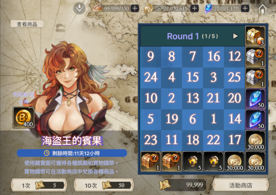 活動說明:海盜船長希爾芙準備了各種任務,完成指定任務後獲得賓果點數吧。