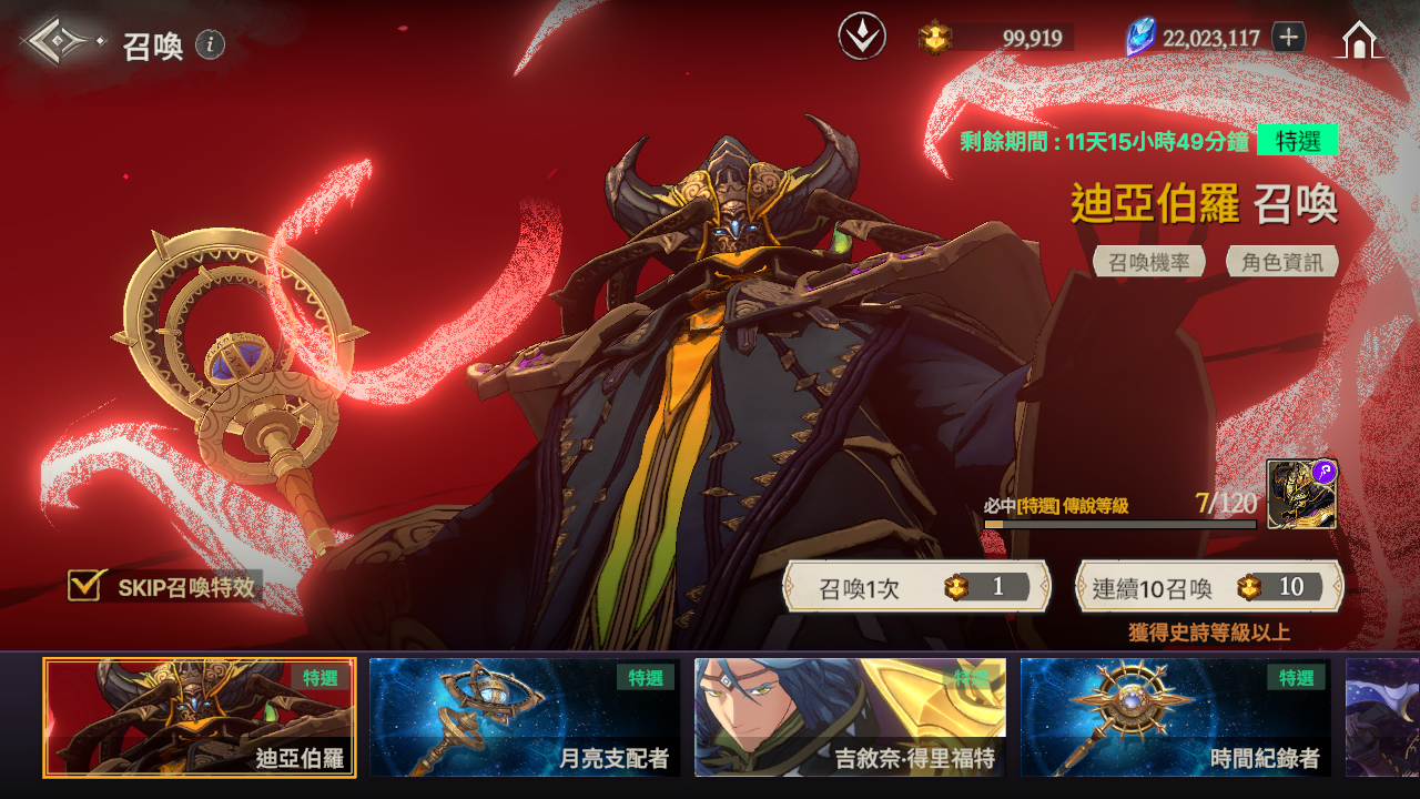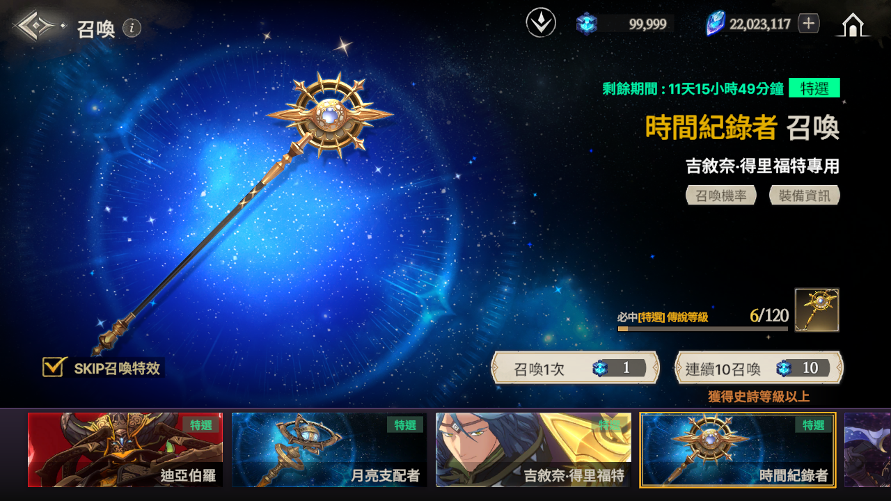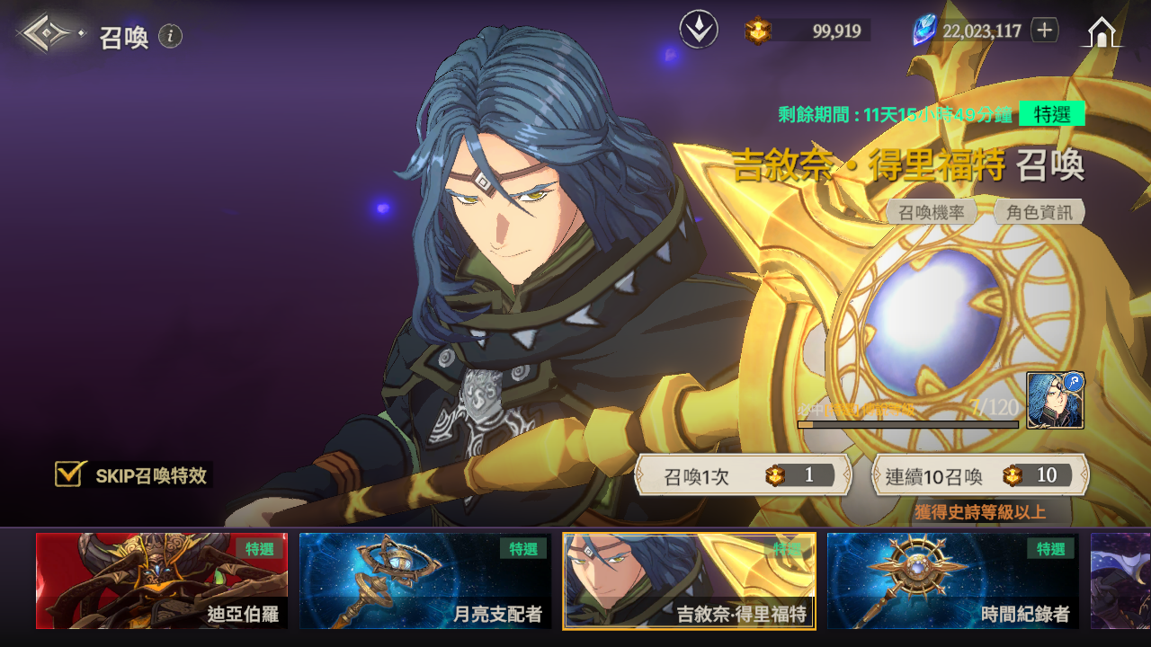 ※ 如果到累計召喚120次為止還沒有獲得特選角色,那麼在第120次時將必中特選角色。