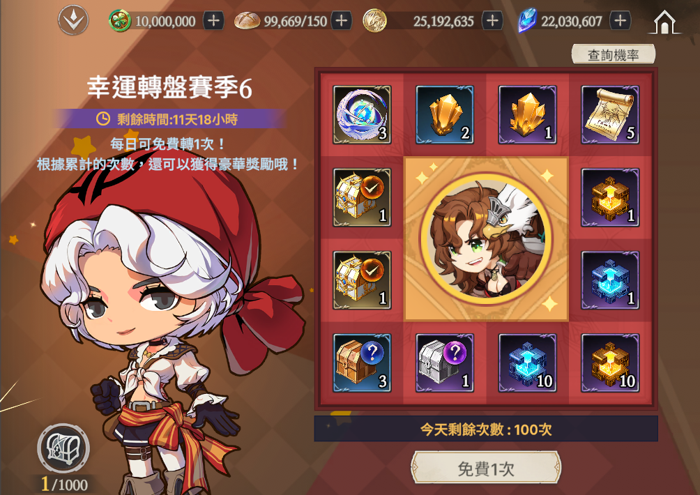 ※ 每日有一次免費的轉盤機會,後續需要花費幸運代幣進行轉盤。