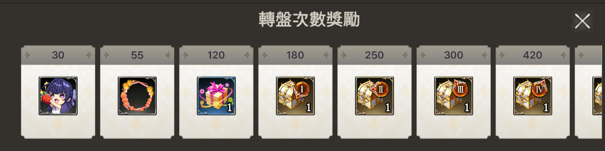 ※ 每進行一次轉盤可獲得1個轉盤點數,獲取達一定數量可額外獲得獎勵。