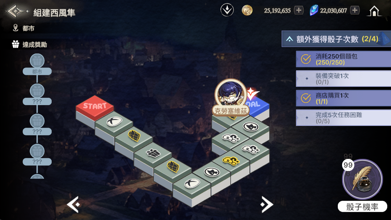 - 每個格子都有「格子獎勵」,使用「西風隼券」移動至該格時即可獲得獎勵。