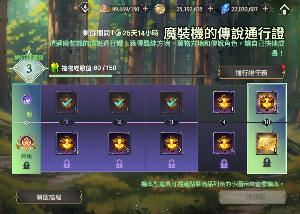 - 通行證需要透過獲得禮物經驗值提升等級,經驗值可以透過完成通行證任務獲得