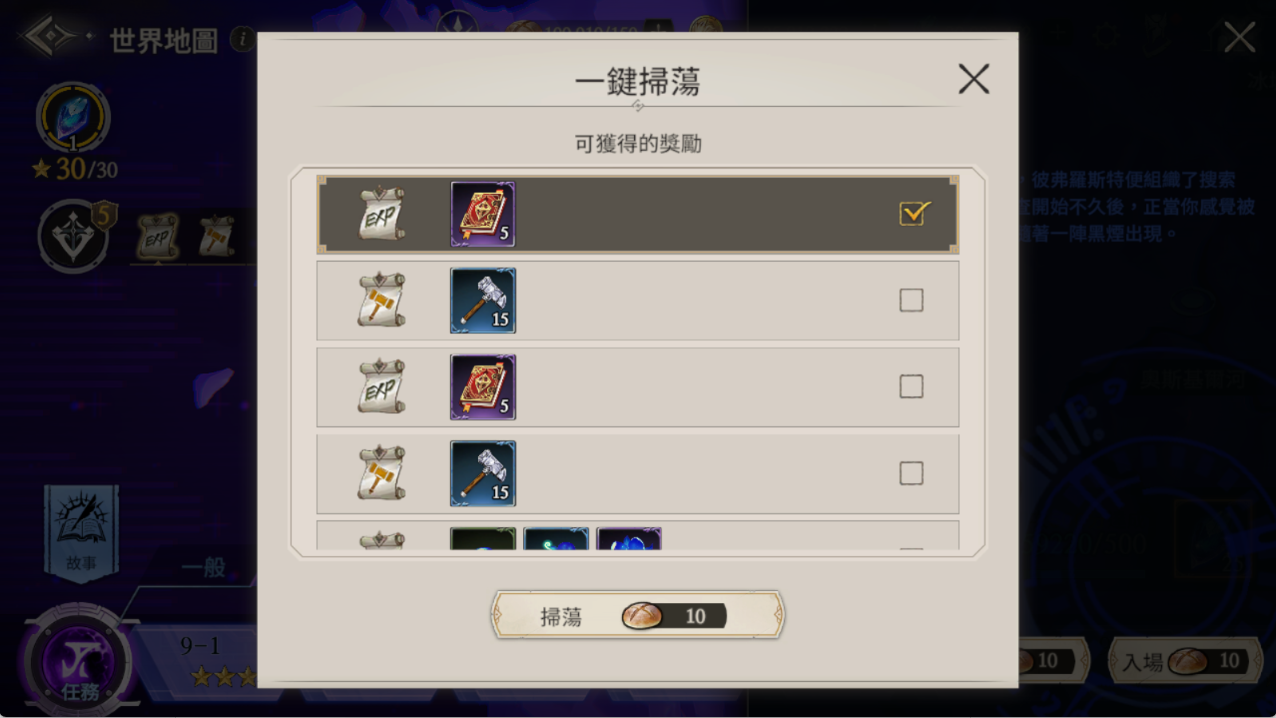 需要先三星通關過突發任務後,才能使用掃蕩