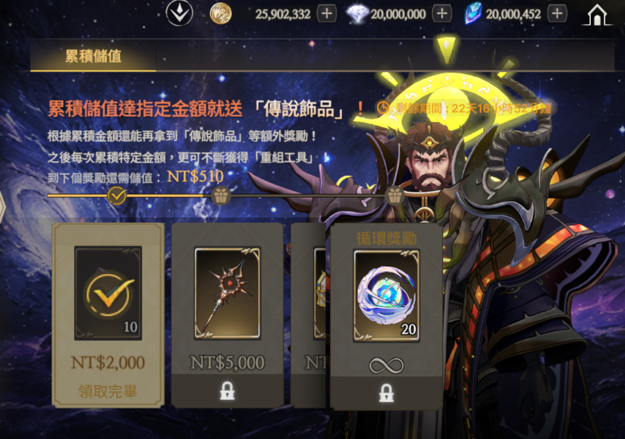 ※ 暗黑神賓果通行證: 購買當日開始計算,30日內可以達成該活動並領取獎勵。