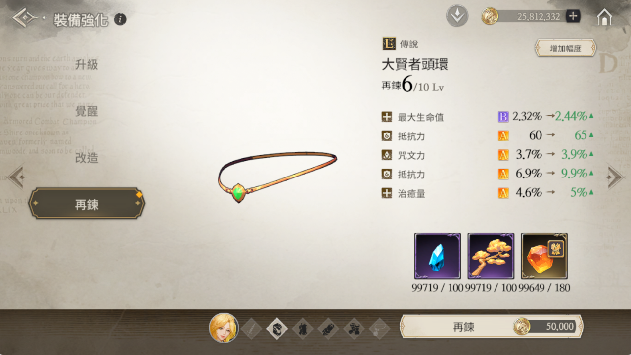 再鍊等級上限提升,上限將依據裝備覺醒星數而變化