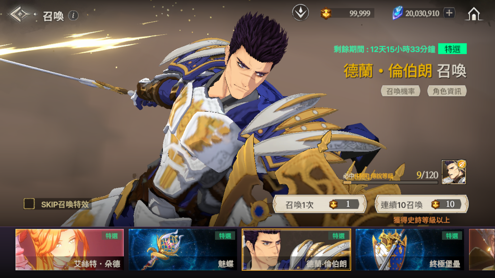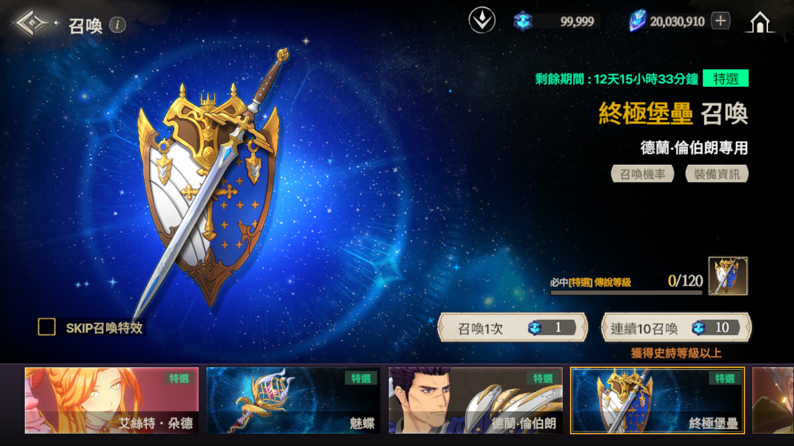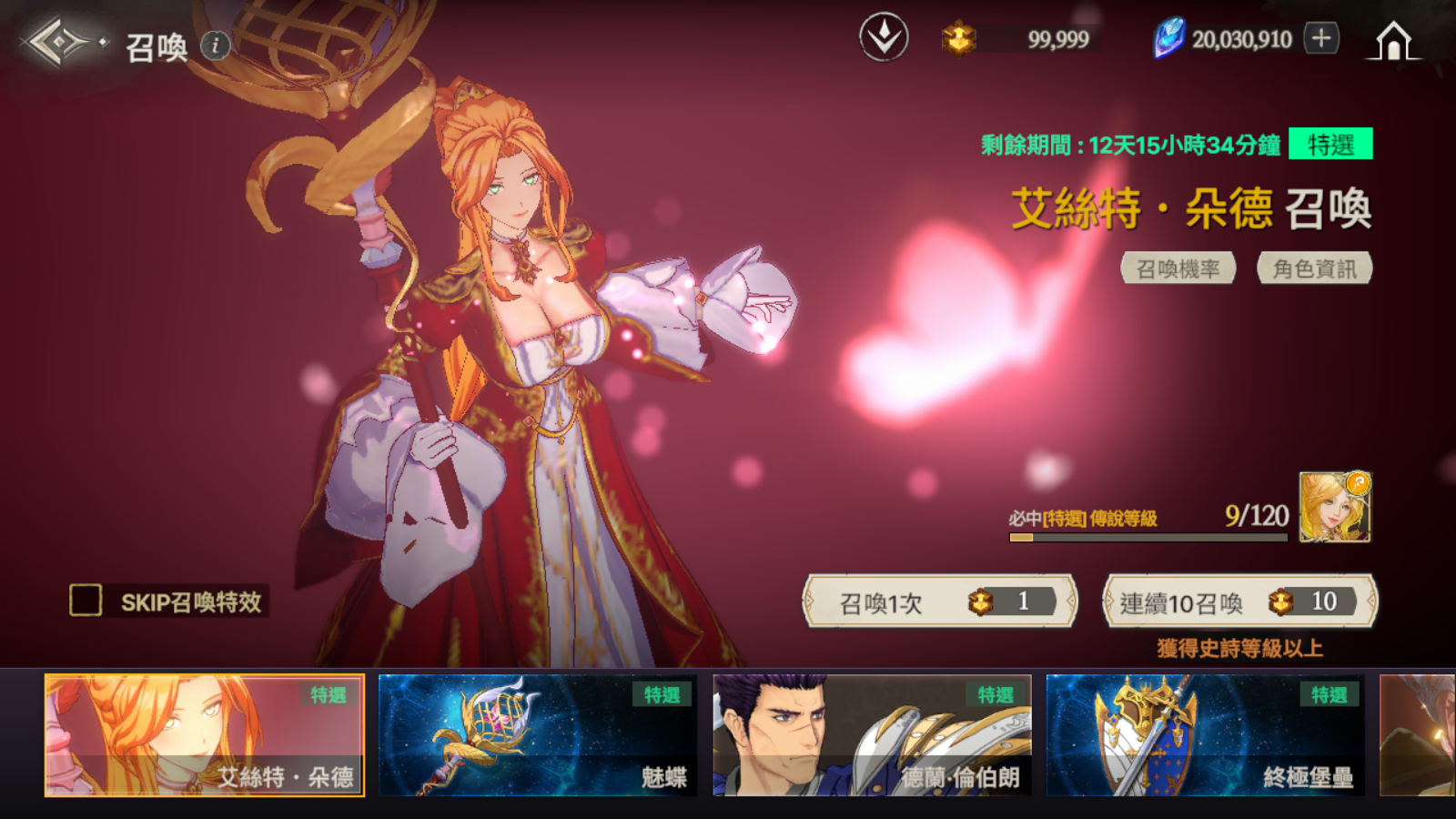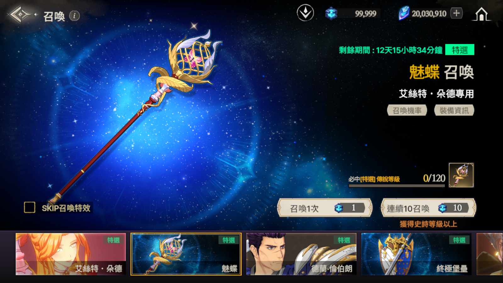 ※ 如果到累計召喚120次為止還沒有獲得特選角色,那麼在第120次時將必中特選角色。