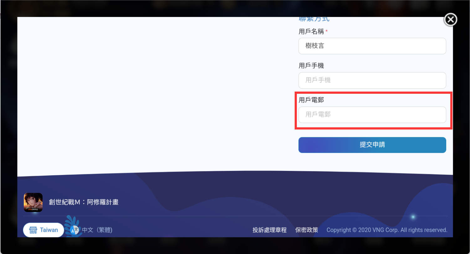 ※在聯繫方式中留下 Email,讓客服在處理回報單時通知您!