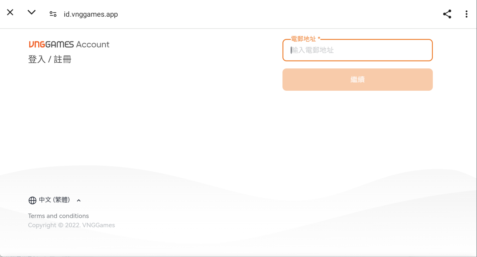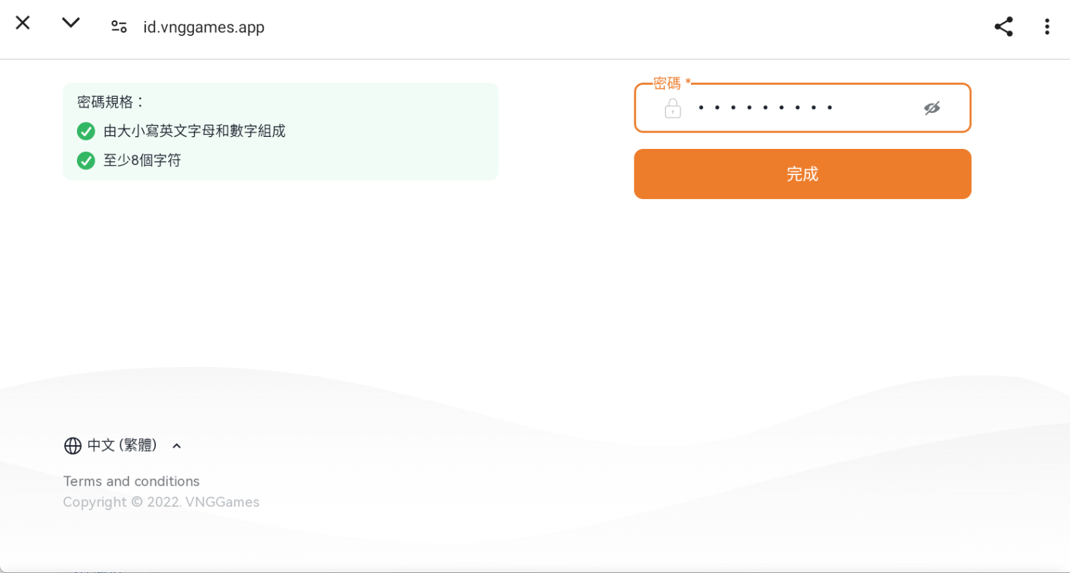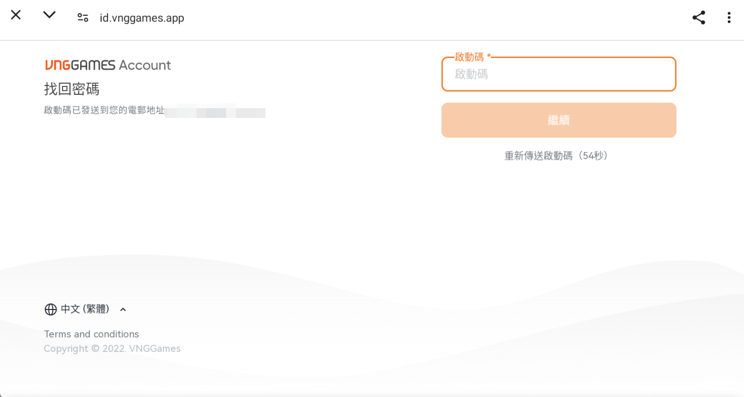 (2) 若原先未註冊過 VNG 帳號,請輸入可正常使用的 Mail 創建新的 VNG 帳號。