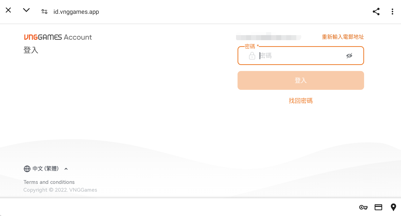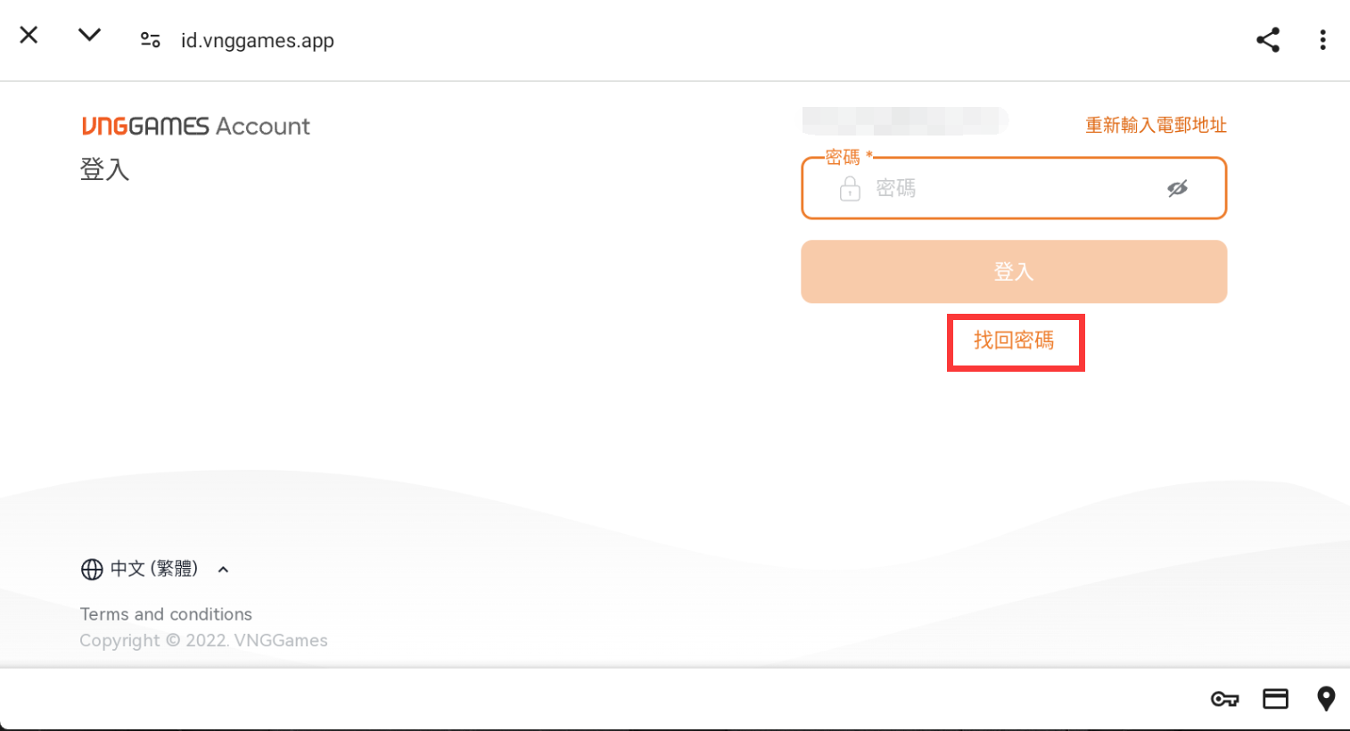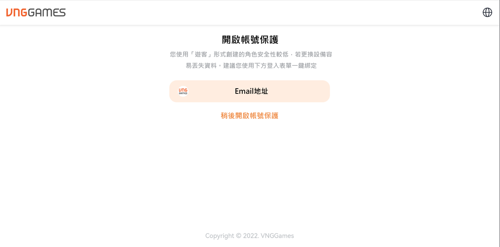 (2) 若原先未註冊過 VNG 帳號,請輸入可正常使用的 Mail 創建新的 VNG 帳號。