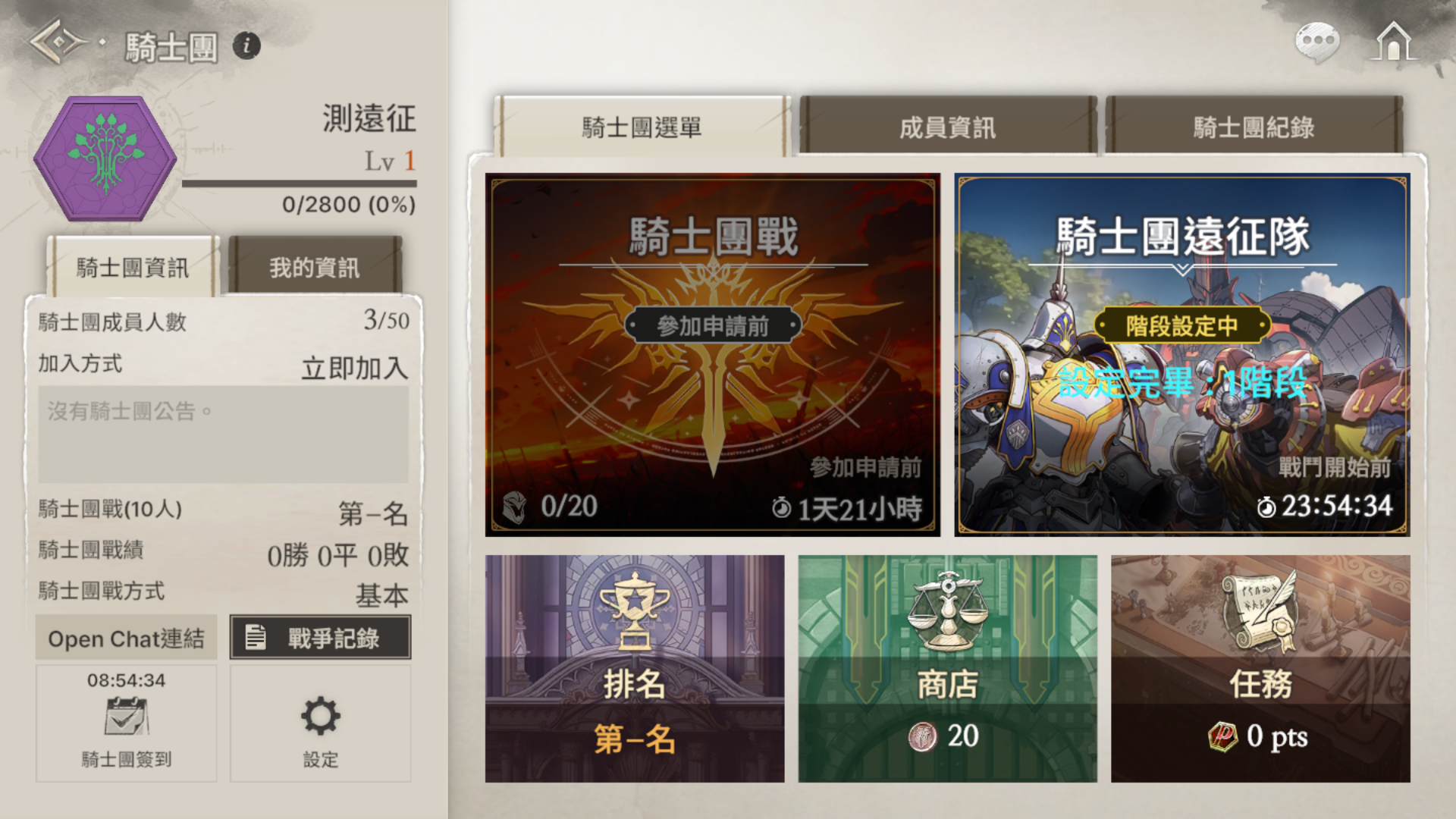 -騎士團遠征可透過消耗入場券進入,每次可進行2次戰鬥。