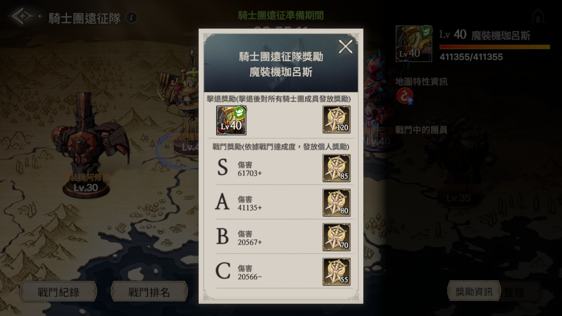 -擊退魔裝機後,所有騎士團成員可獲得的據點擊破獎勵,詳細內容請參考如下: