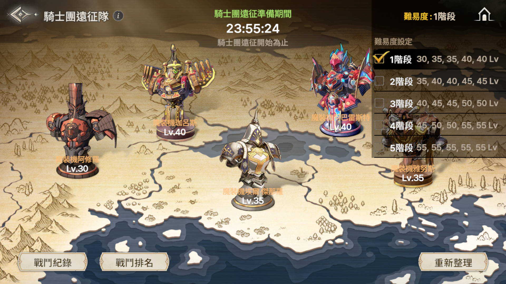 -騎士團遠征共分為五種難度,且每種難度皆細分為五個等級。