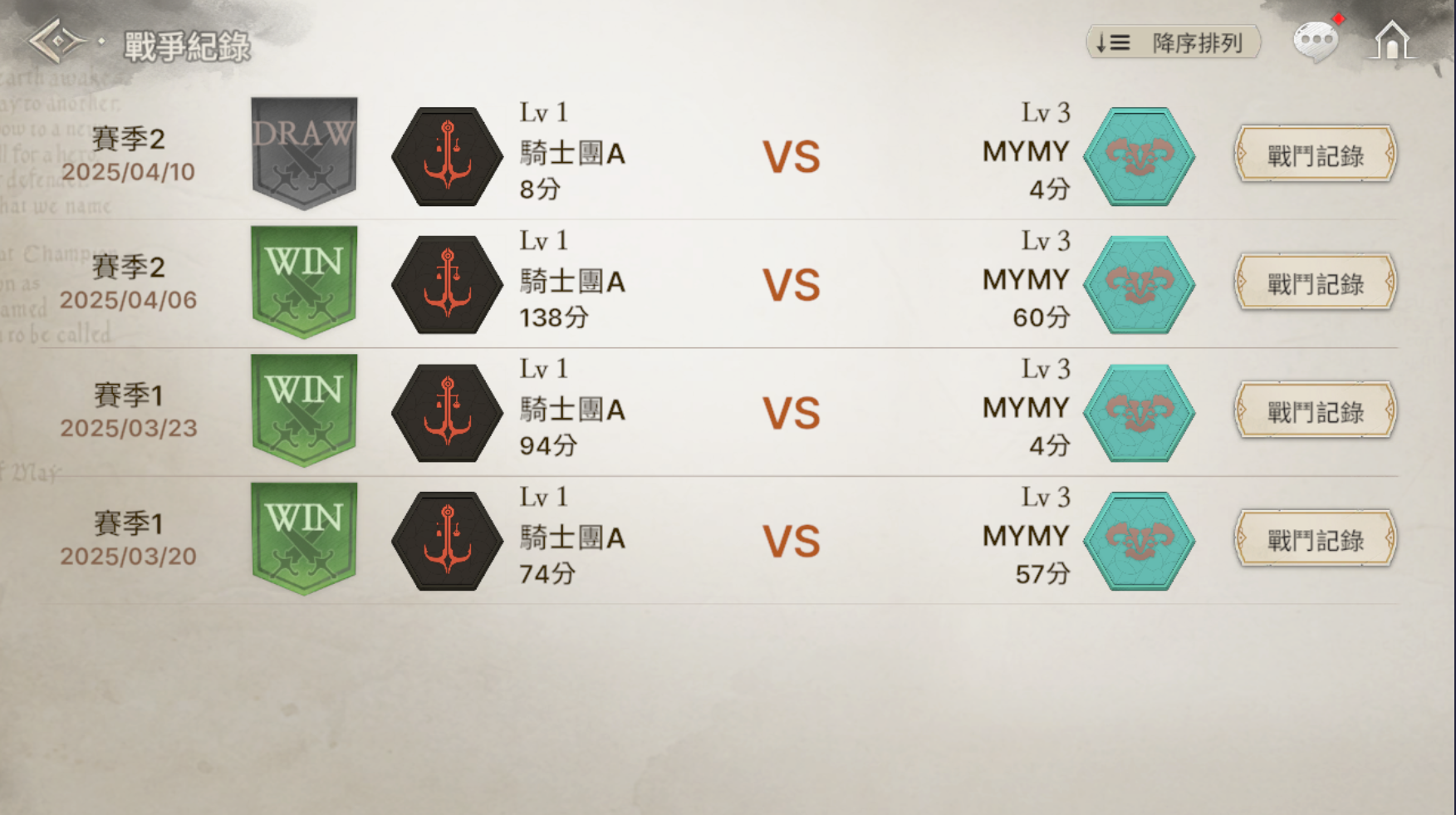 - 騎士團戰配對勝利/敗北/平手獎勵必須於配對戰鬥期間內,消耗1張以上的騎士團戰入場票券並且完成戰鬥後,結束後才可以領取。