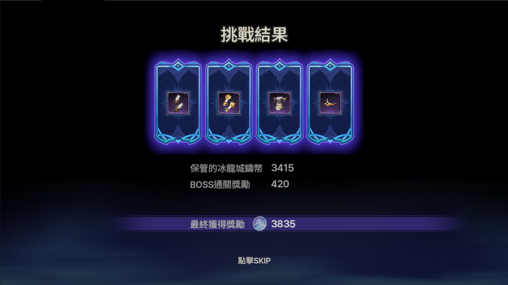 - 獎勵每週可領取一次,並且只要獲得獎勵,該週內就無法再挑戰冰龍城逃脫。