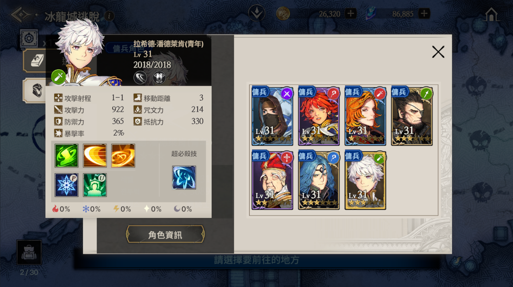 - 點擊背包按鈕,在角色分頁上可以查看角色資料。傭兵角色會顯示傭兵標籤,