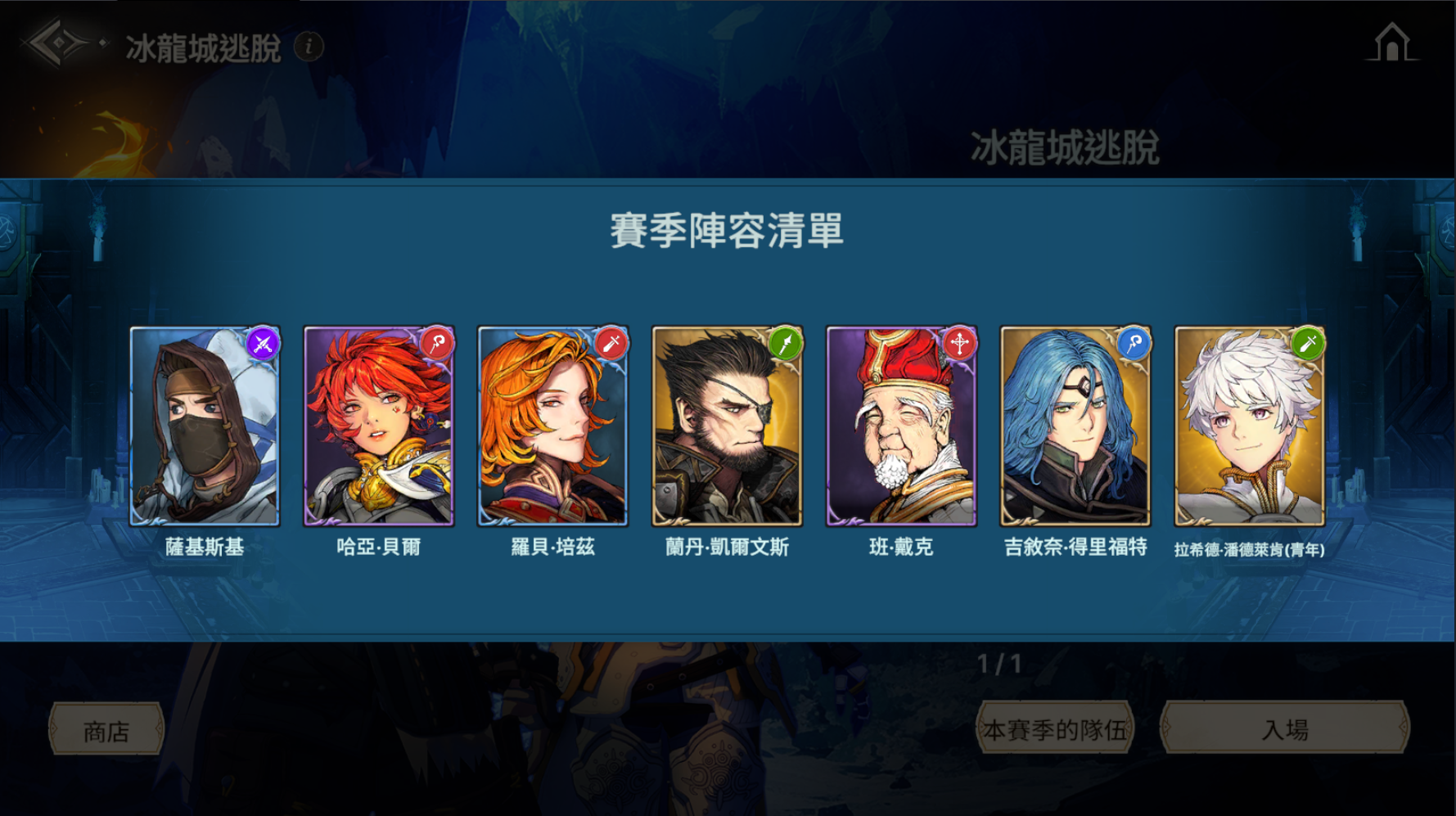 - 每週在選定的地圖上使用7個角色逃離冰龍城。