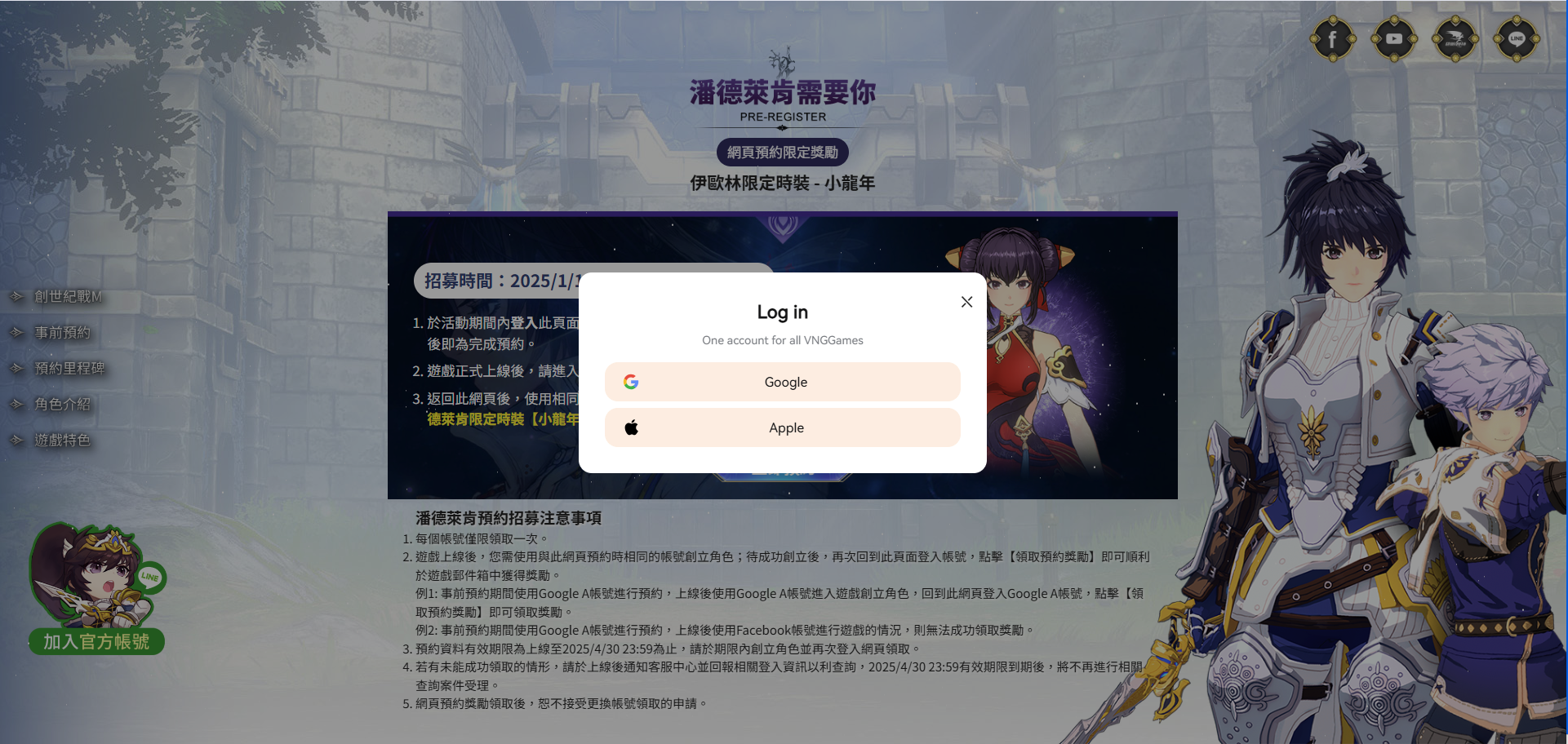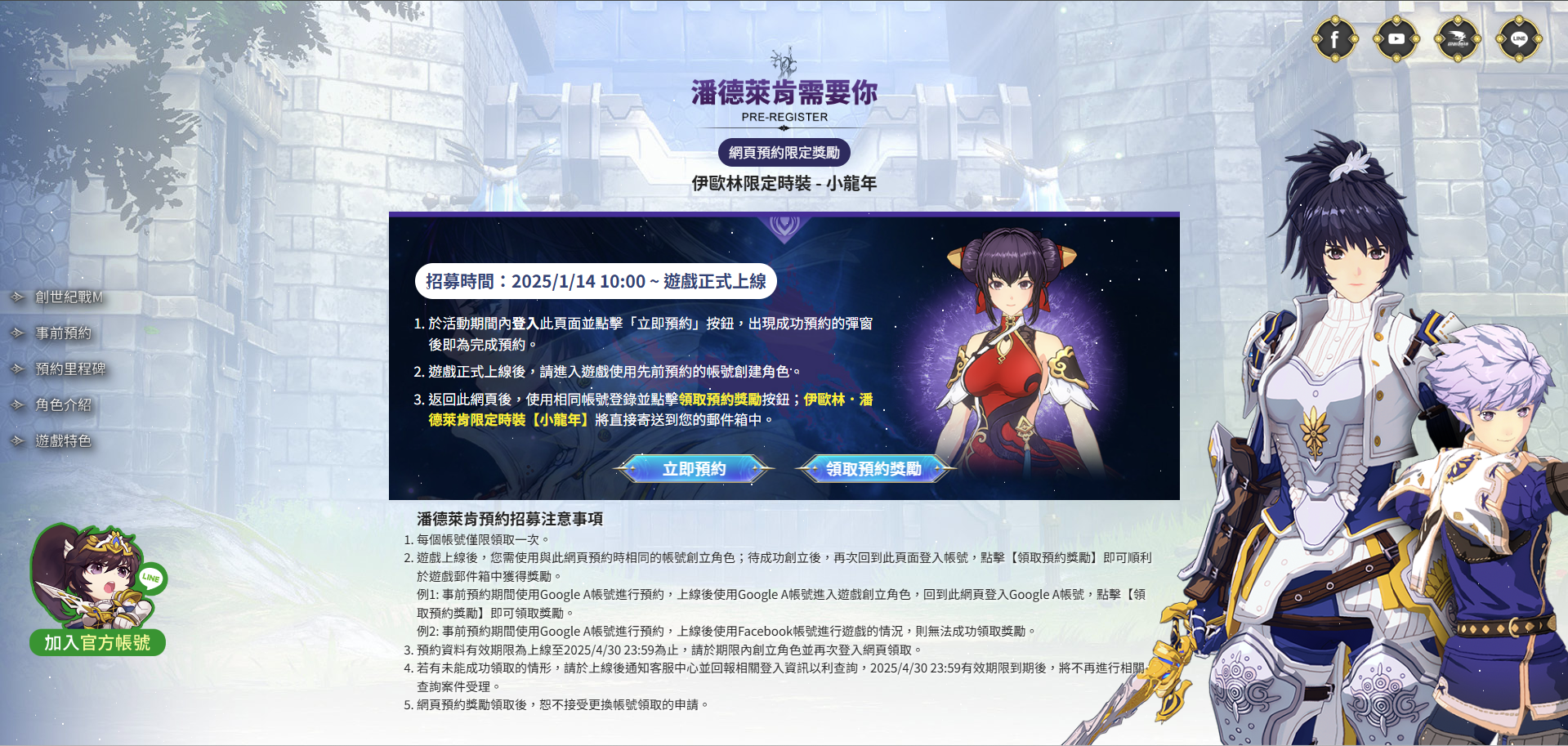 ※請注意,務必使用與預約時相同的登入方式進行遊戲,否則將無法領取事前預約獎勵。