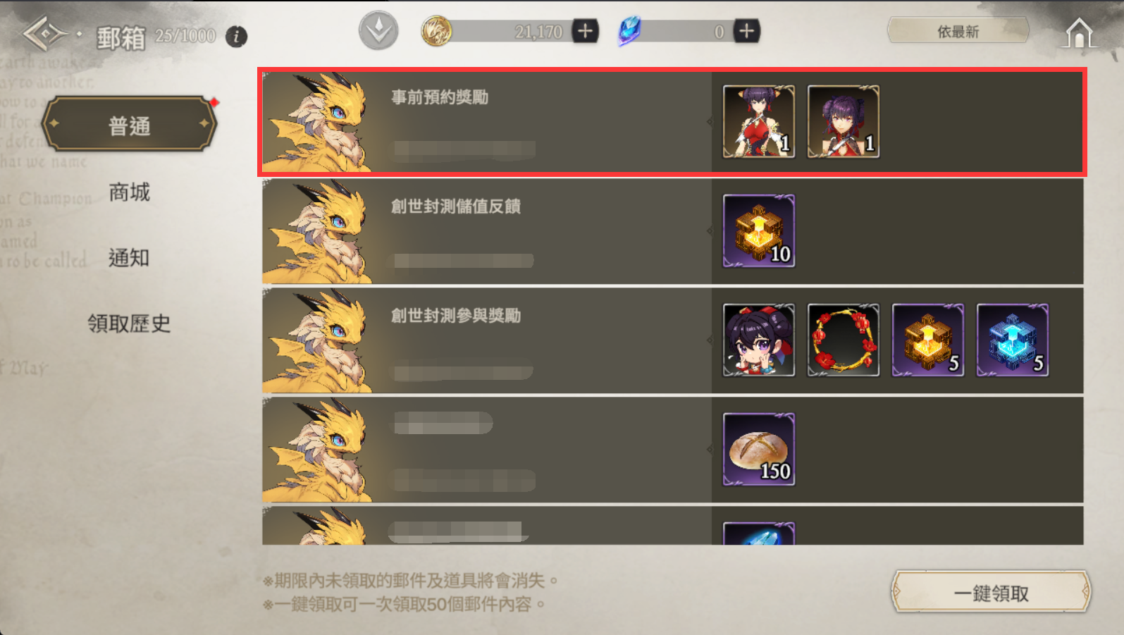 4. 確認名稱後即可於原網頁位置,點擊「領取預約獎勵」後,獎勵會立即發送至遊戲內信箱。