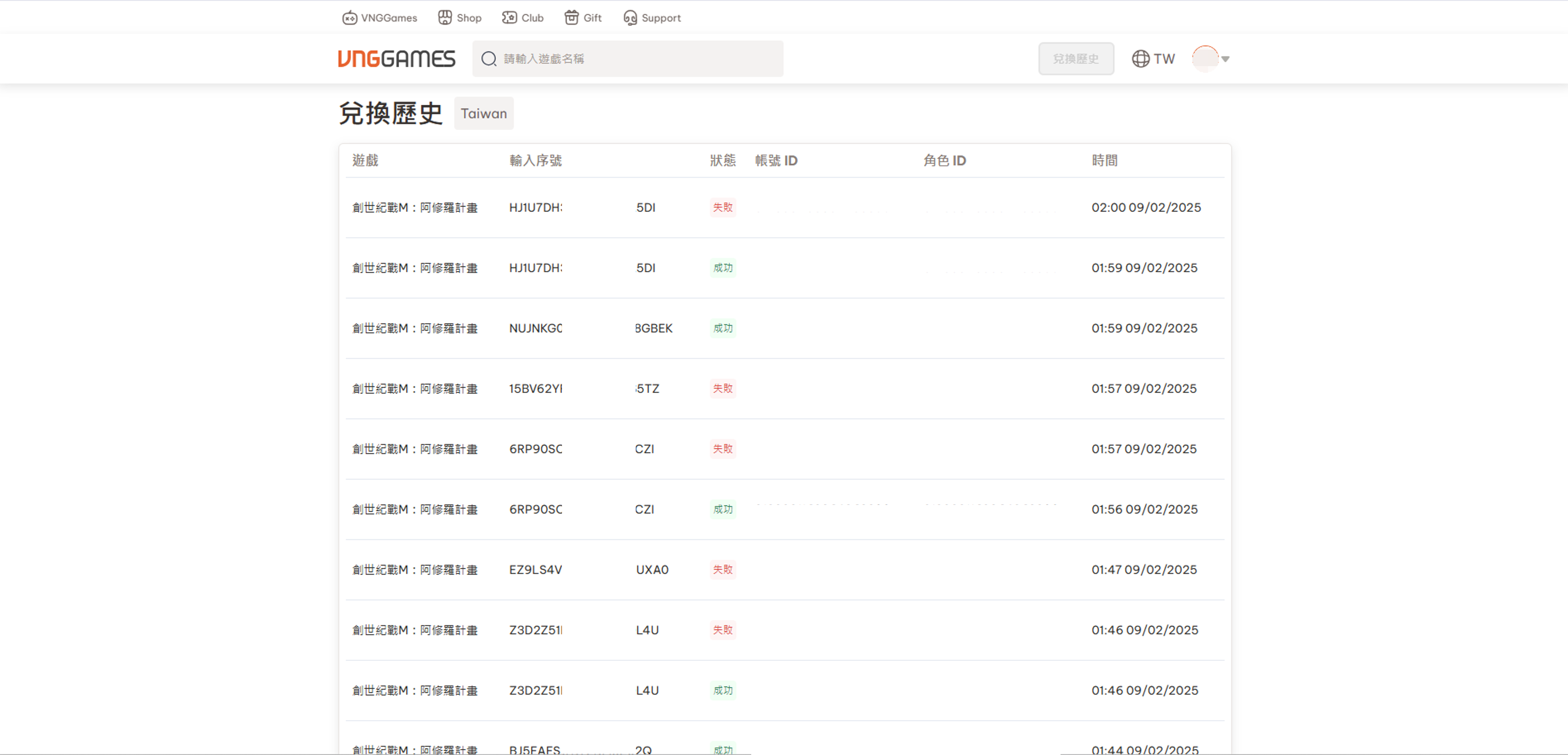 - 序號兌換紀錄查詢:點我前往